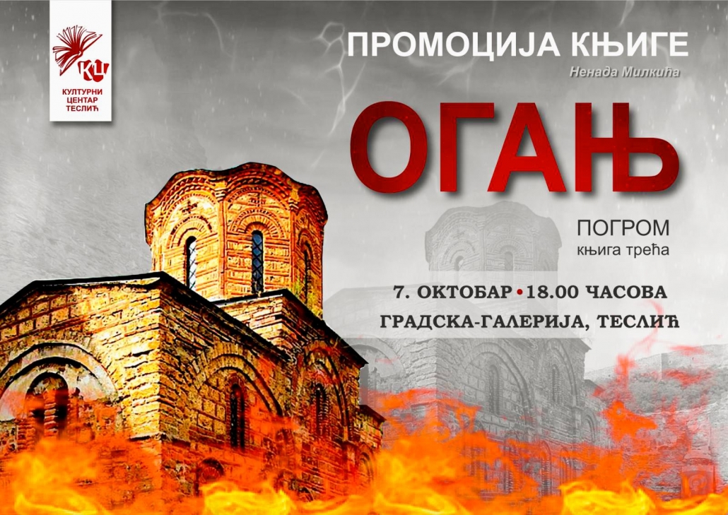 Драги наши суграђани, позивамо вас на промоцију романа „Огањ“, треће књиге у оквиру циклуса „Погром“.