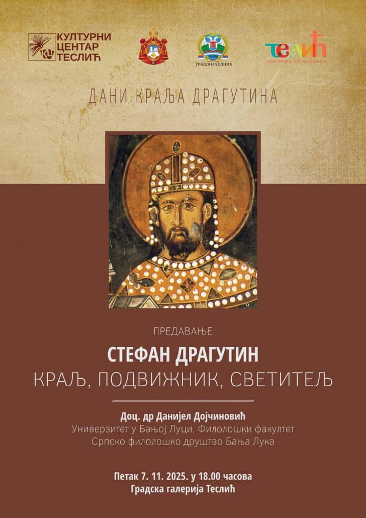 U okviru manifestacije „Dani kralja Dragutina“, u petak, 7. novembra 2025. godine, sa početkom u 18.00 časova, u Gradskoj galeriji Teslić, biće održano predavanje pod nazivom